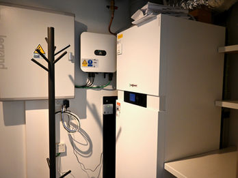 Wasruimte met wasmachine en droogkast